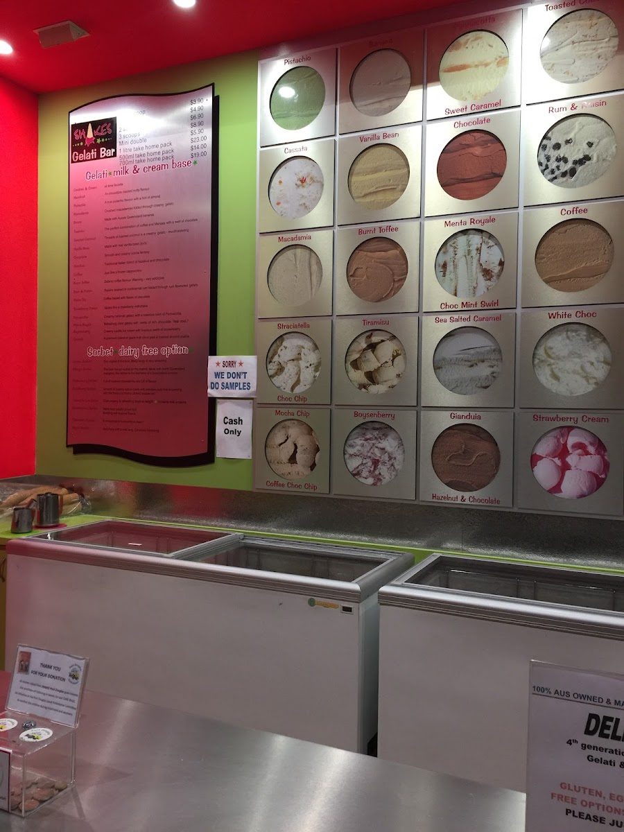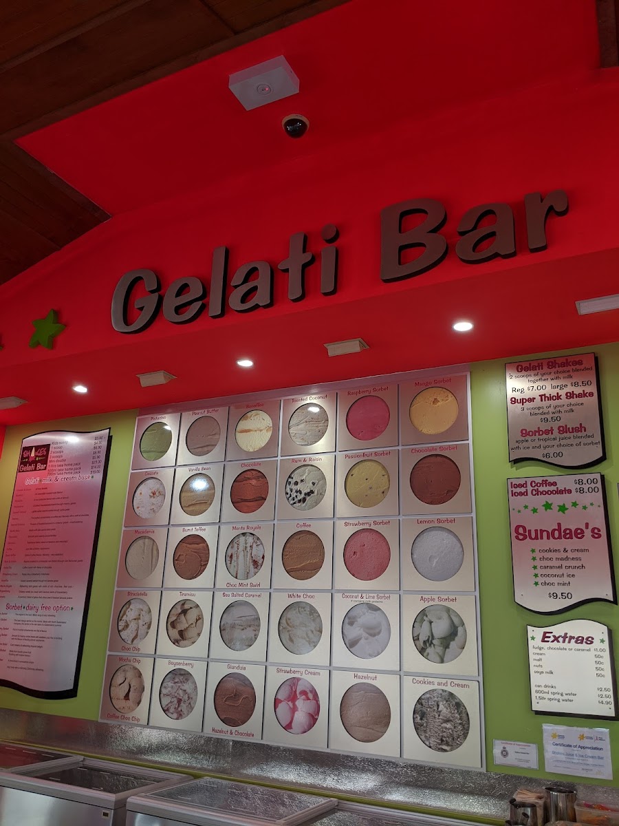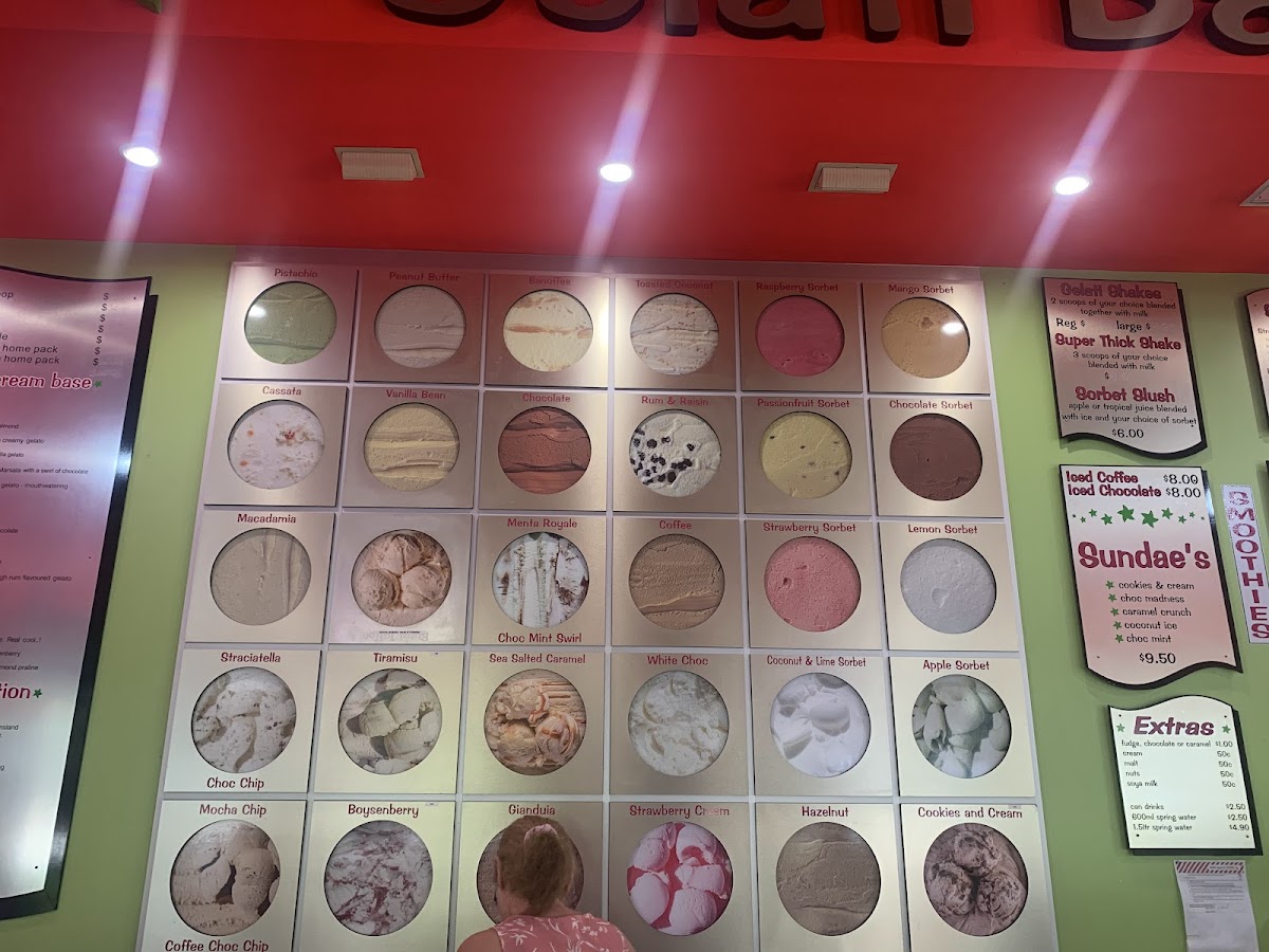 Shakes Ice Cream Bar in Port Douglas offers a delightful selection of treats to satisfy any sweet tooth. Their sundae menu features classic favorites such as Cookies & Cream, Choc Madness, and Caramel Crunch, with options like Coconut Ice and Choc Mint adding a fun twist. Prices are not specified, but the variety promises a unique indulgence for every palate. For those looking to customize, a range of Extras is available, including Fudge, Cream, Malt Nuts, and Soya Milk. The milk smoothies are equally tempting, with flavors like Boysen Buzz, Choc Delight, Banana Creamy, and Creamy Mango. To top it off, the menu also offers signature drinks like Pistachio, Super Thick Shake, Iced Chocolate, and the refreshing Island Zest, along with Leed Coffee for a more robust pick-me-up. Whether you're craving a decadent sundae or a refreshing smoothie, Shakes Ice Cream Bar has a satisfying option for every taste.